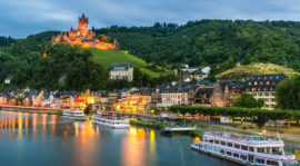 Gemimiz bu sabah Ren Nehrinin en büyük kollarından olan Mosel Nehrine girecek. Mosel üzerindeki en güzel kasabalardan birisi olan Cochem’e varana kadar nehir çevresindeki yemyeşil doğa ve yerleşimler size büyüleyecek. Saat 14:00’de Cochem’e varışımız sonrasında dileyenler rehberlerinin ekstra düzenleyeceği Reichsburg Kalesi ve Şarap Tadım Turu’na katılabilirler. Ahşap tarihi binalar ve dar sokaklardan oluşan Cochem, Reichsburg Kalesinin yamacında sizlere harika bir gün yaşatacak. Almanya’nın en büyük bağ bölgelerinden olan Mosel Vadisinin incisi Cochem’de her yerde Reisling üzümleri temalı alışveriş yapabilirsiniz. Gemimiz bu akşam 21:30’da demir alacak.