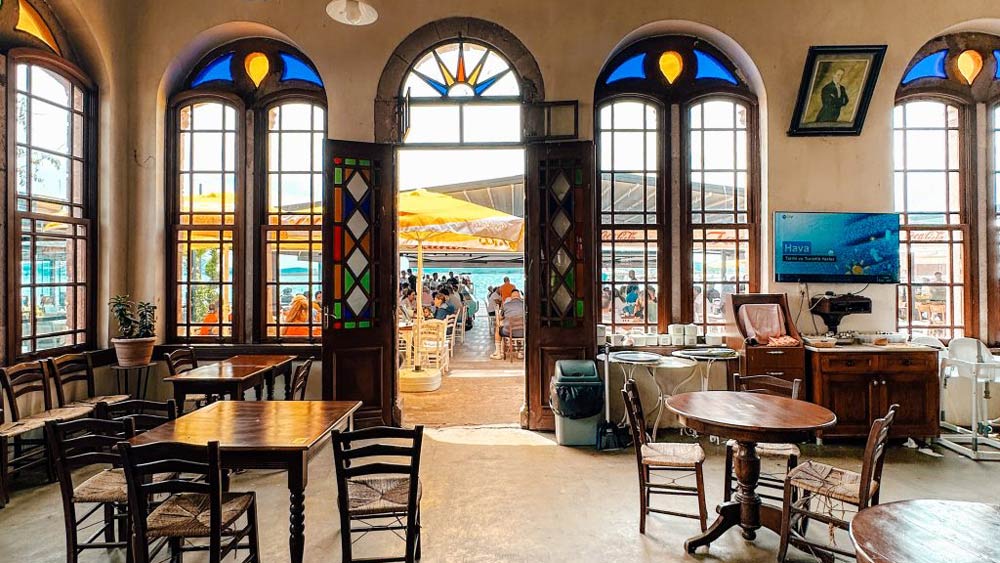 Yemek sonrasında serbest zamanda Cunda Çarşısındaki şirin dükkanlardan özel şeyler alabiliriz. Reçelleri, peynir çeşitlerini, hediyelik zeytinleri ve sakızlı kurabiyeleri tavsiye edebiliriz. Alışverişte çok oyalanmaz isek Cunda’nın en tipik yerlerinden biri olan Taş Kahve’de çay içmek de gayet keyifli…