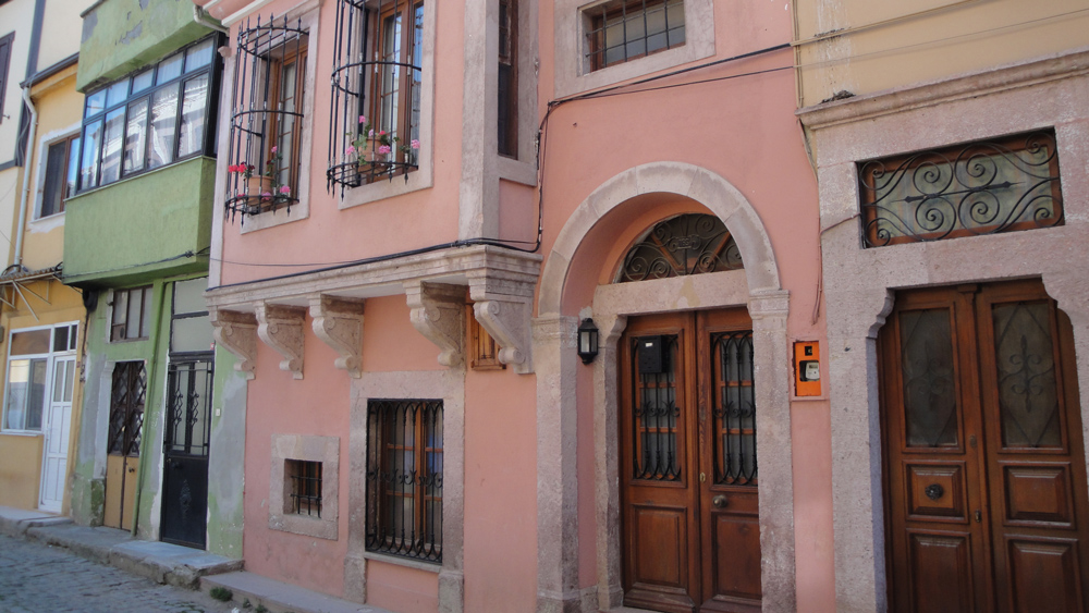 Gün boyunca yürüyerek geziyor, kent dokusuna dair yerlerin çoğunu dışarıdan görüyoruz. Sefa Caddesi’nde yer alan Eski Hastane (sonra Askeri Karargah), yakın zamanlarda aslına uygun olarak restore edilmiş olan Ayvalık Ayazması’nı ziyaret ediyor bu yapının ilginç hikayesini dinliyoruz. Adını Rumca mercanköşk anlamına gelen macaron’dan alan mahalleden ilerleyerek, eski Ayvalık evlerini, kiliselerini (Faneromeni Klisesi , Kata Panaya Klisesi) ve Camilerini gördükten sonra Şeytan Kahvesinde mola veriyoruz. Gezimize devamla, Aya Yorgi Kilisesi’ni (günümüzde Çınarlı Camii) gördükten sonra Ayvalık çarşısına varıyoruz.