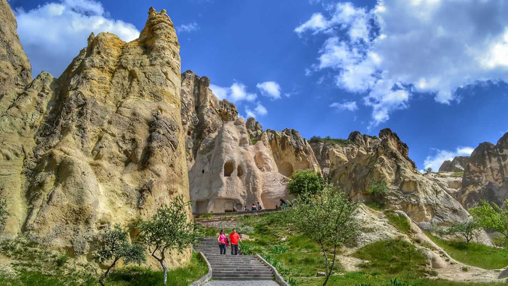 Turumuza DERVENT Vadisinden başlıyoruz. ZELVE AÇIK HAVA MÜZESİ’ni ve RAHİPLER VADİSİ’ni geziyoruz. Yeni adıyla PAŞABAĞ’da farklı peribacaları görüyoruz. Sonra ÇAVUŞİN – GÖREME Açık Hava Müzesi’ne giderek (Rahipler- Rahibeler Manastırı, Aziz Basil Şapeli, Elmalı, Azize Barbara Kilisesi) geziyoruz.