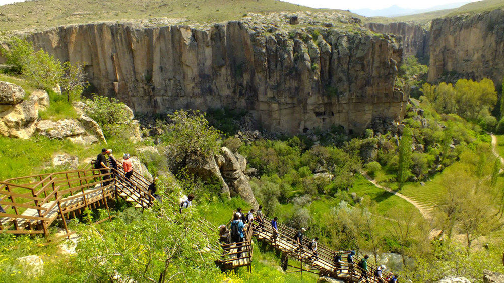 Sabah kahvaltısı sonrasında IHLARA VADİSİ’ne gidiyoruz. Hasan Dağı’ndan çıkan lavların soğumasıyla meydana gelen ve Melendiz çayının açtığı bir kanyon coğrafyasında uzanan bu olağanüstü vadiyi geziyoruz. Ihlara Vadisinde Hristiyanlığın ilk dönemlerinde gizlice ibadet etmek için kayalara oyulmuş olan pek çok kilise var. Nispeten iyi durumdaki birkaçını görmek istiyoruz. Ağaçlı ve Yılanlı kiliselerini gördükten sonra Vadi içinde yürümek isterseniz yaklaşık 4 km lik bir yürüyüş söz konusu. Ya da yine merdivenlere dönerek kısa tur yapmış olacağız.