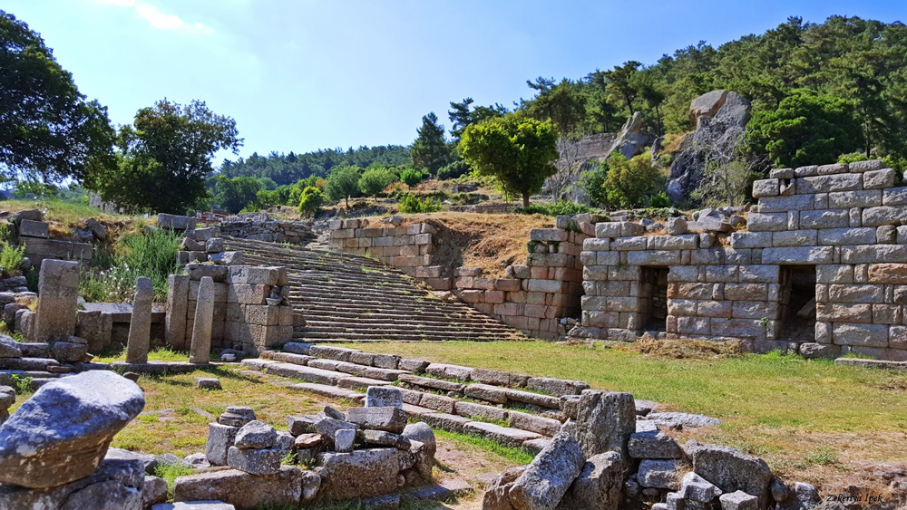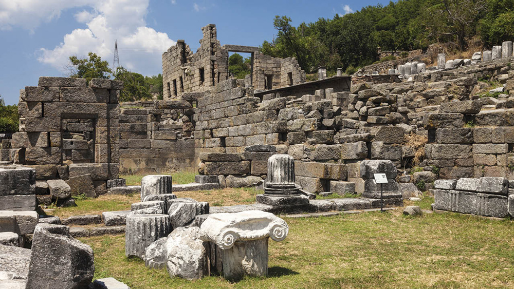 İlk durağımız Labraunda Antik Kenti olacak. Milas’ın kuzeyinde, Batı Menteşe dağlarını aşarak Karpuzlu’ya ulaşan yol üstündeki bu ören yeri antik çağda bir yerleşme değil, Mylasa (Milas) kenti toprakları içinde yer alan bir kutsal alan. Karyalıların tanrısı Zeus’a Labraundos (çift yüzlü baltalı) sıfatıyla tapınılan bu kutsal alan, Perslerin Karya satrabı Hekatomnos ve oğulları zamanında, bu yönetici ailenin kudretinin bir nişanesi olarak önemli yapılarla donatılmış. Burada Yarıkkaya dibinden kanayan kutsal pınarı, Zeus tapınağını, “andron” adı verilen konuk ve ziyafet evlerini, teras ve stoaları, anıt mezarı geziyoruz. Antik çağda bir festival sırasında kutsal alanda yaşananları hayal etmeye çalışıyoruz. Kutsal alanı Mylasa’ya bağlayan antik yolun rotası üzerinden Milas’a geri dönüyor ve öğle yemeğimizi burada yiyoruz.